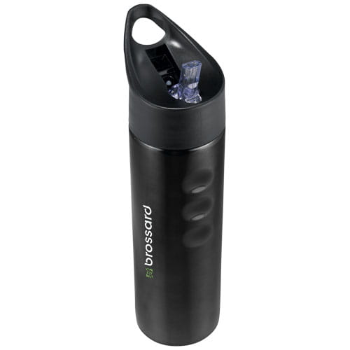 Sportowa butelka ze stali nierdzewnej Trixie. Konstrukcja z pojedynczymi ściankami. Przekręcane, szczelne wieczko z otwieraniem typu „flip-top”. Łatwe przenoszenie dzięki wcięciom na palce. Pojemność to 750 ml. Stal nierdzewna.