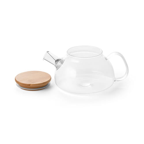 Czajnik ze szkła borokrzemianowego z bambusową pokrywką. Zawiera zaparzacz ze stali nierdzewnej. Pojemność do 750 mL. Dostarczany w pudełku upominkowym z papieru kraftowego. 200 x 85 mm