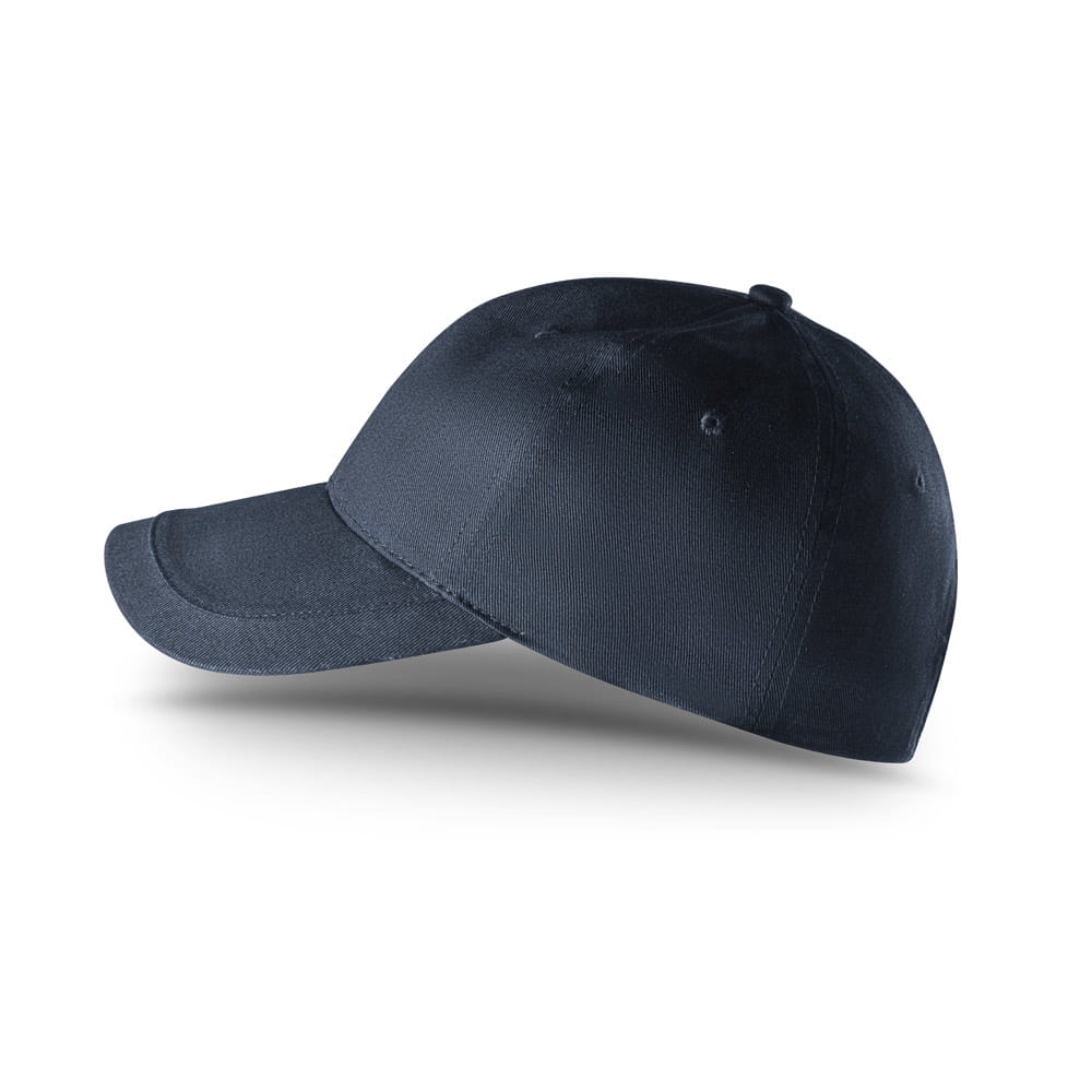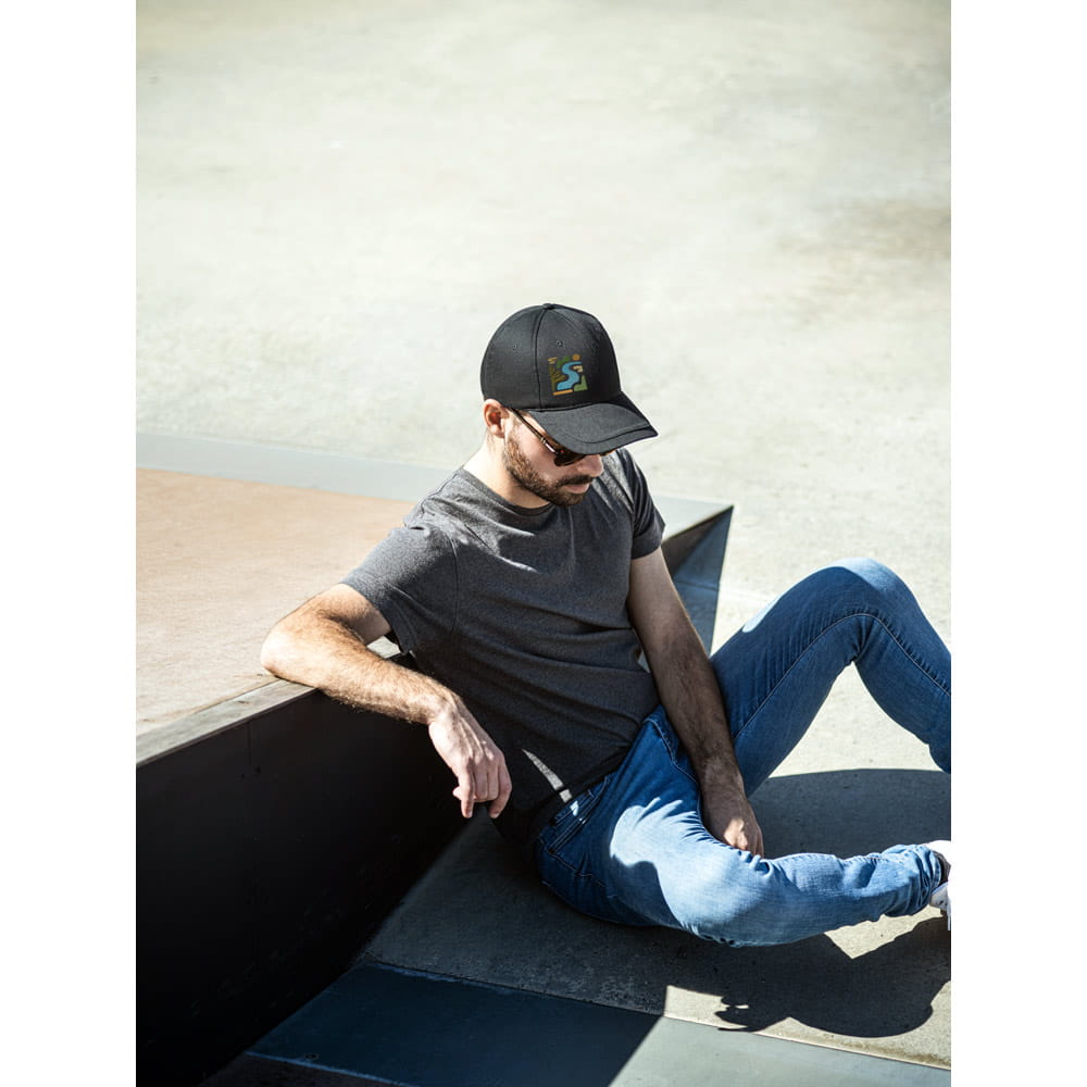 Czapka wykonana w ze szczotkowanej bawełny (65% recyklingu) z 6 panelami i oczkami wentylacyjnymi (280 g/m²). Regulowana za pomocą metalowej klamry. Rozmiar: 580 mm