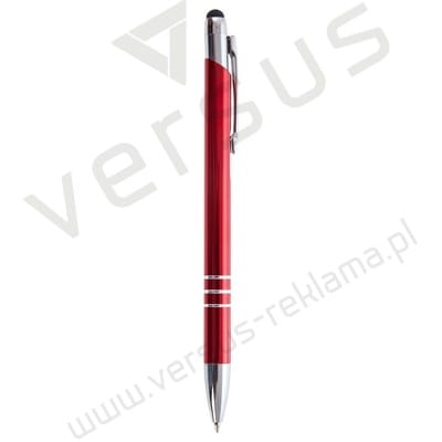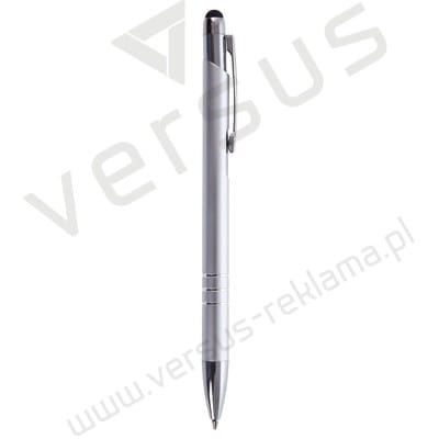 Długopis, touch pen z czarną, gumową końcówką, kolorowym trzonem i srebrnymi elementami