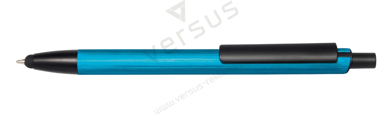 Długopis GENEVA z niebieskim tuszem oraz końcówką do ekranu dotykowego do łatwiejszej obsługi smartfonów i tabletów, długość linii pisania około 800 m.