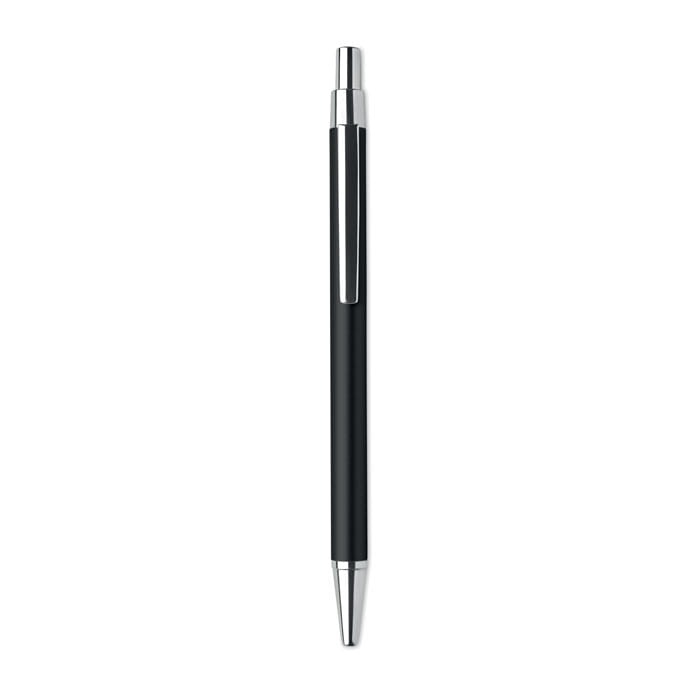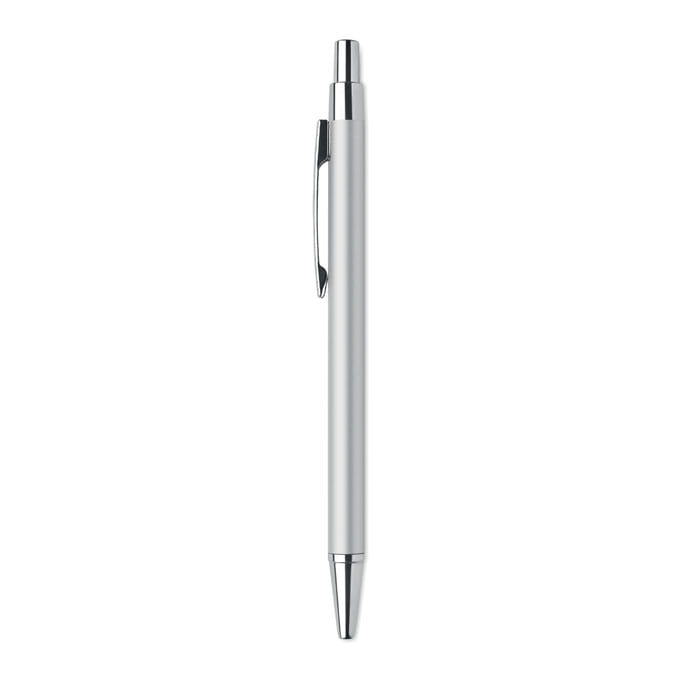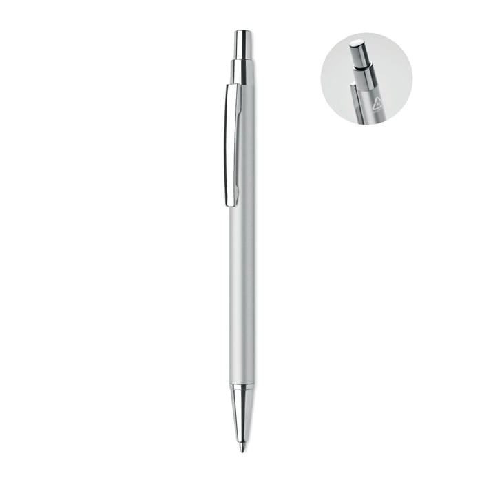 Długopis automatyczny wykonany z aluminium pochodzącego z recyklingu. Niebieski tusz. Klasyczny niezbędnik biurowy w ekologicznej odsłonie. Aluminiowe wykończenie nadaje temu długopisowi bardziej ekskluzywny wygląd.