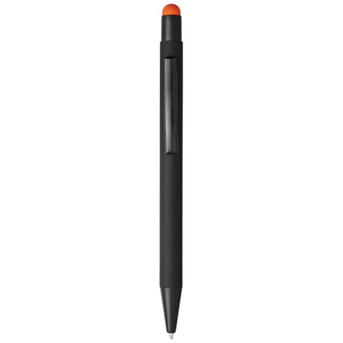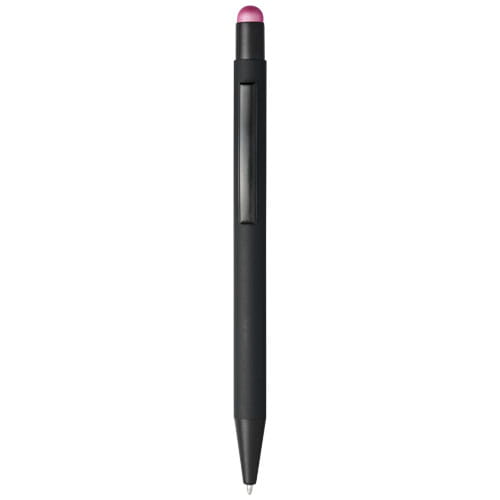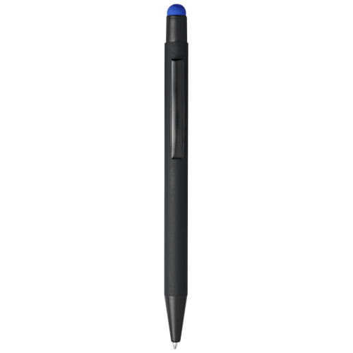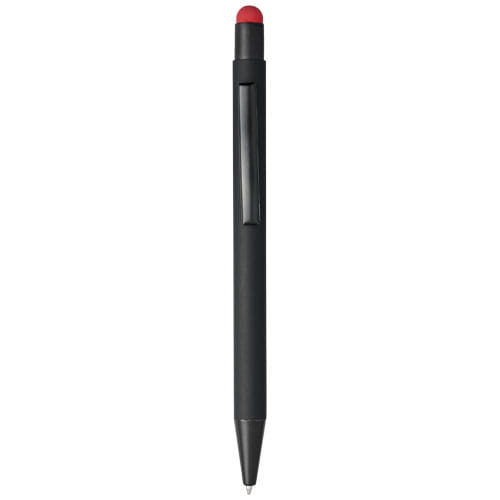 Długopis Dax z gumowym rysikiem. Gumowany długopis automatyczny z rysikiem. Kolor końcówki rysika pasuje do laserowo wygrawerowanej warstwy spodniej długopisu. Długopis posiada metalowy klips, gumowy rysik i jest wykonane z aluminium. Żywotność: 450 m. Metal.