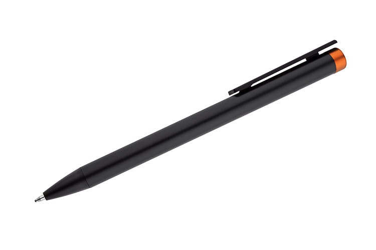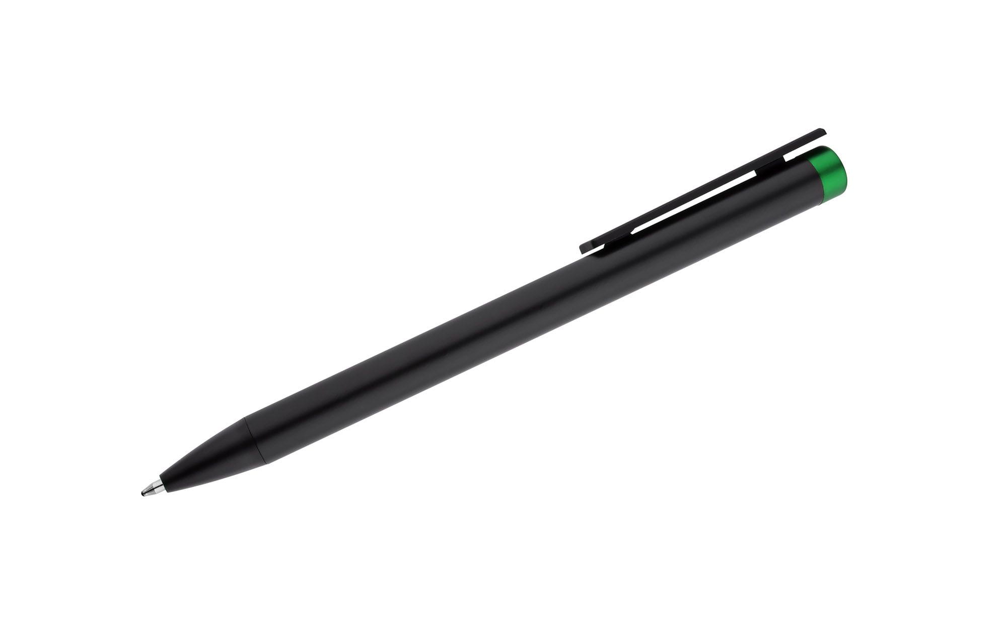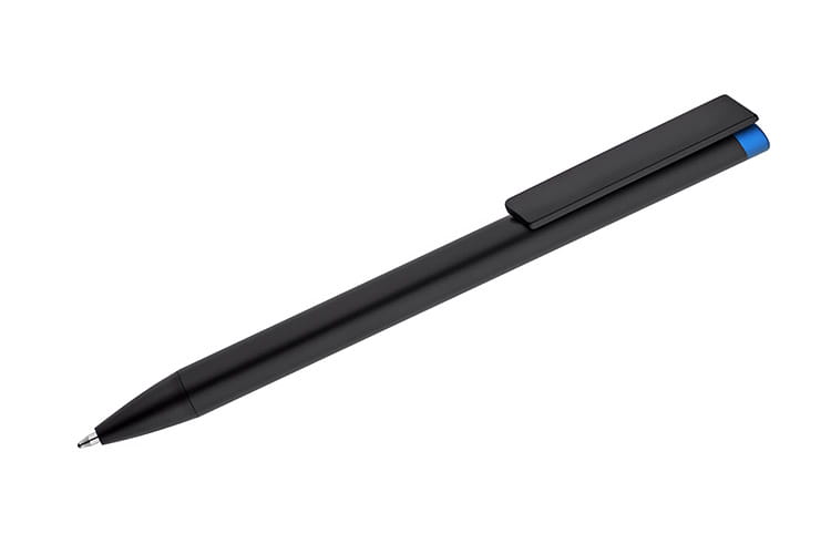 ALI to wyjątkowy długopis umożliwiający wykonanie znakowania w kolorze końcówki długopisu. Czarny metalowy korpus oraz czarne wykończenia stanowią idealne tło dla kolorowego grawerowania. Długopis automatyczny. Wkład typu X20 o grubości 1.0 mm w kolorze niebieskim.