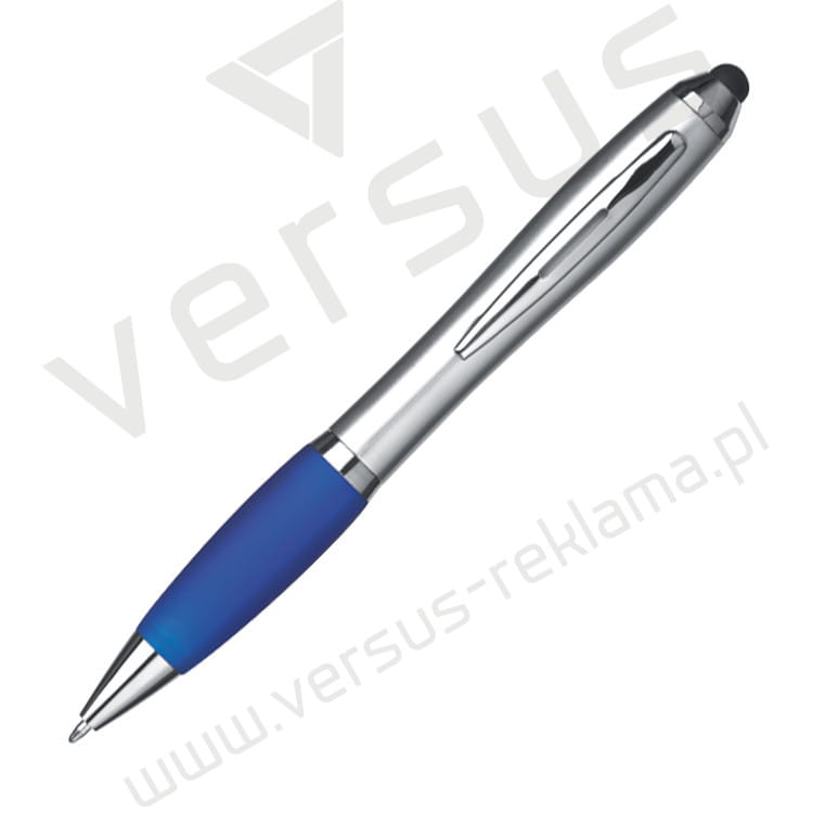 Klasyczny długopis z niebieskim wkładem i specjalną końcówką do obsługi ekranów dotykowych.