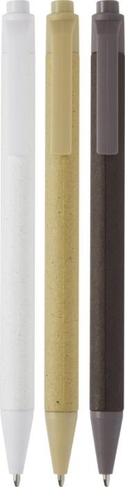 Lekki długopis do codziennego robienia notatek. Korpus jest wykonany z odpowiedzialnie pozyskiwanego papieru gniecionego. Brązowy papier zawiera pozostałości kawy, zielony – oliwek, a biały – kukurydzy. Spód, klips i końcówka są wykonane z tworzywa sztucznego PLA. Czarny tusz. Żywotność: 700 metrów. Fruit paper, PLA Plastic.