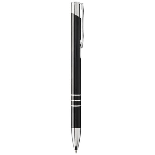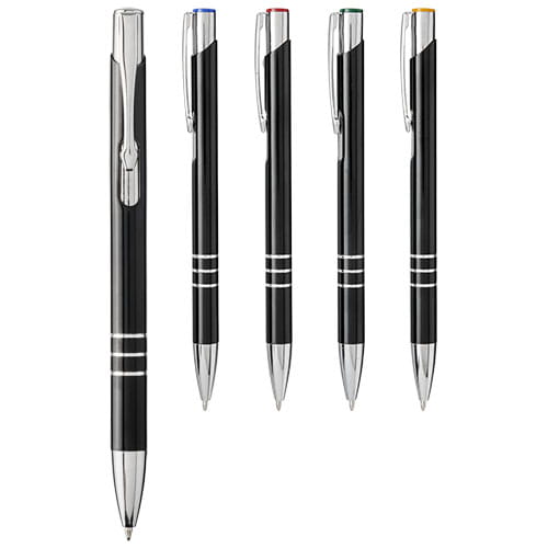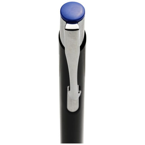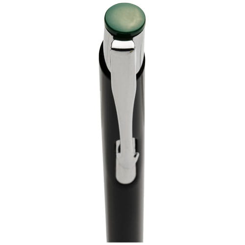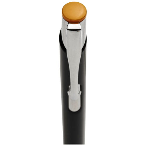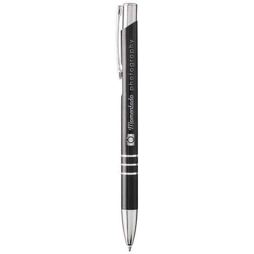 Kolorowy długopis automatyczny Moneta. Długopis automatyczny z czarnym korpusem o różnych kolorach wykończenia górnej części. Po wygrawerowaniu laserowym ujawnia się kolor pod spodem, odpowiadający kolorowi na górze długopisu. Długopis posiada metalowy klips, aluminiowy korpus oraz końcówkę i górę z plastiku ABS. Bogaty i popularny asortyment Moneta jest dostępny w wielu różnych stylach i wykończeniach. Aluminium.