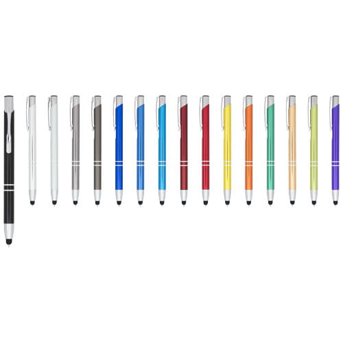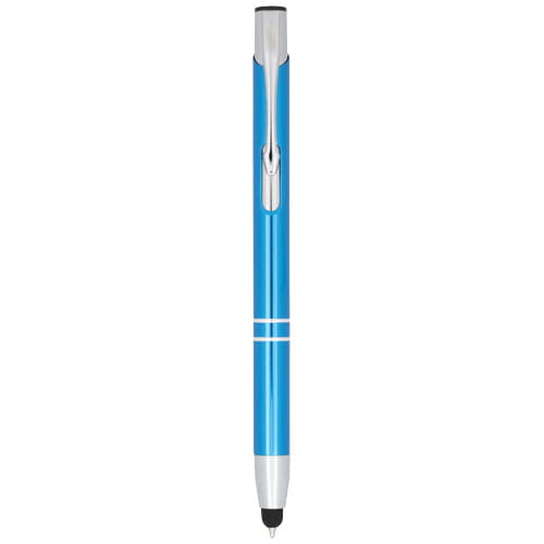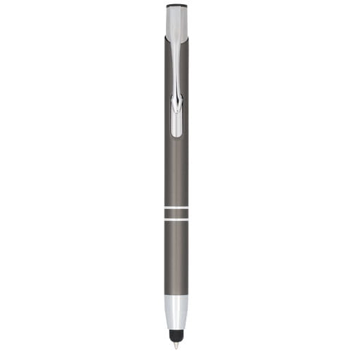 Długopis ze stylusem Moneta. Metaliczny anodyzowany długopis z rysikiem wbudowanym w końcówce długopisu. Długopis jest dostępny w szerokiej gamie kolorów i posiada anodyzowane wykończenie, które nadaje mu oszałamiający połysk. Bogaty i popularny asortyment Moneta jest dostępny w wielu różnych stylach i wykończeniach. Aluminium.