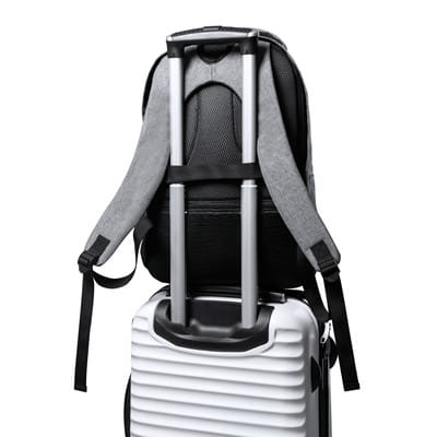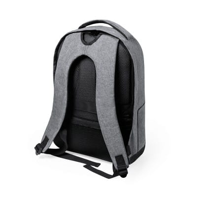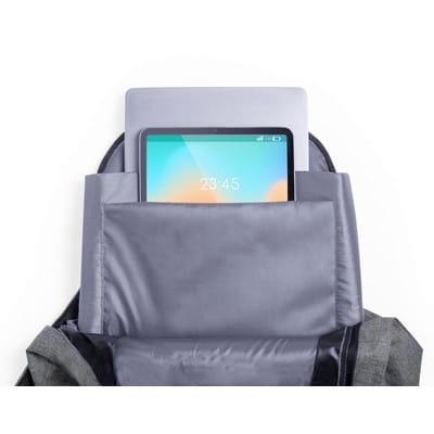 Plecak z miękką przegrodą na laptopa do 15" i tablet do 12", wykonany z RPET, przegroda główna i przednia kieszeń na zamek błyskawiczny, miękki tył i paski na ramię