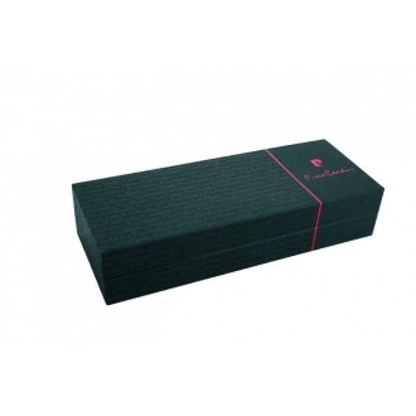 Długopis metalowy z mechanizmem obrotowym, charakteryzujący się klasycznym wzornictwem. Czarna, lakierowana nasadka idealnie nadaje się do grawerowania. Wyposażony w wysokiej jakości niebieski wkład w standardowym rozmiarze. W zestawie z wkładem zapasowym piszącym na czarno. Zapakowany w eleganckie pudełko prezentowe z certyfikatem autentyczności Pierre Cardin.