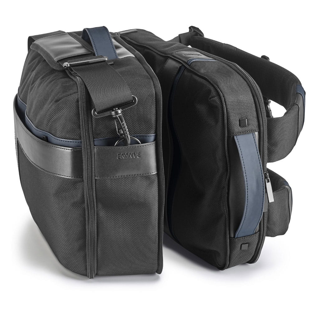 DYNAMIC 2 in 1 to miejski plecak, który wyróżnia się uniwersalnością i podwójnych zastosowaniem. Jego konstrukcja pozwala mu być unikalnym przedmiotem, który dyskretnie można przemienić w plecak i torbę podróżną. Plecak posiada dwie kieszenie wewnątrzne, które pozwalają przechować laptopa do 15.6'' i tablet do 10.5''. Przestronna torba podróżna mieści w sobie ubrania na wycieczkę 2-3 dniową. Posiada tylną kieszeń na plecach wyposażoną w system antykradzieżowy. Materiał imitacja skóry 1680D; zamki z elastyczną opaską z płytką z PU. DYNAMIC 2 in 1 ma również pasek pozwalający na transport na uchwycie walizki, co podkreśla jego praktyczną stronę. Dwie części tego plecaka mogą być używane osobno lub jako całość. Dostarczany w torbie z materiału non-woven. 300 x 420 x 200 mm | Plecak: 300 x 420 x 75mm | Torba podróżna: 300 x 420 x 130 mm | Torba: 550 x 580 x 210mm