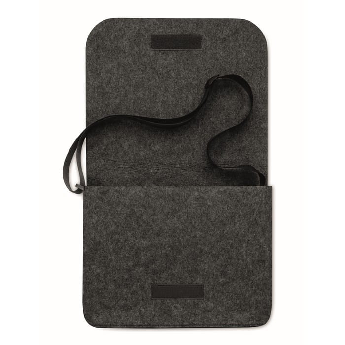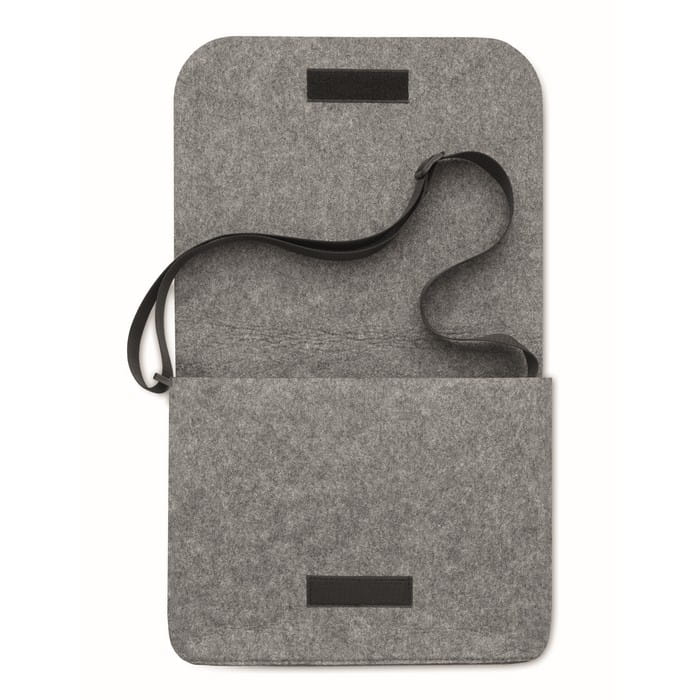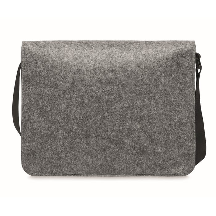 Filcowa torba listonoszka lub torba na laptopa RPET z zapięciem na rzep. Pojawiaj się w pracy w dobrym stylu dzięki tej filcowej torbie na ramię, częściowo wykonanej z przetworzonego plastiku PET. Torba mieści 15-calowy laptop lub mniejszy oraz inne artykuły biurowe, takie jak notesy czy długopisy. Wszystko, czego potrzebujesz w ciągu dnia, zapakowane w kompaktową listonoszkę.
