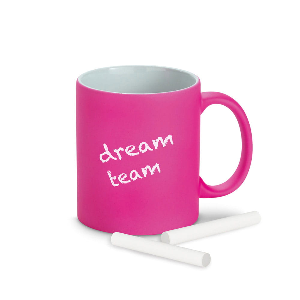 Kubek ceramiczny, w neonowych kolorach z matowym wykończeniem, o pojemności do 350 mL. Zewnętrzne wykończenie tego kubka odwzorowuje efekt tablicy i umożliwia pisanie po nim kredą (kreda nie jest dołączona). Dostarczany w pudełku. ø83 x 97 mm | Pudełko: 102 x 117 x 88 mm