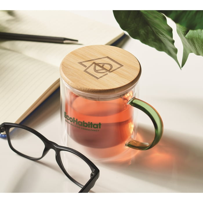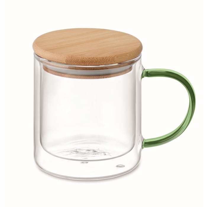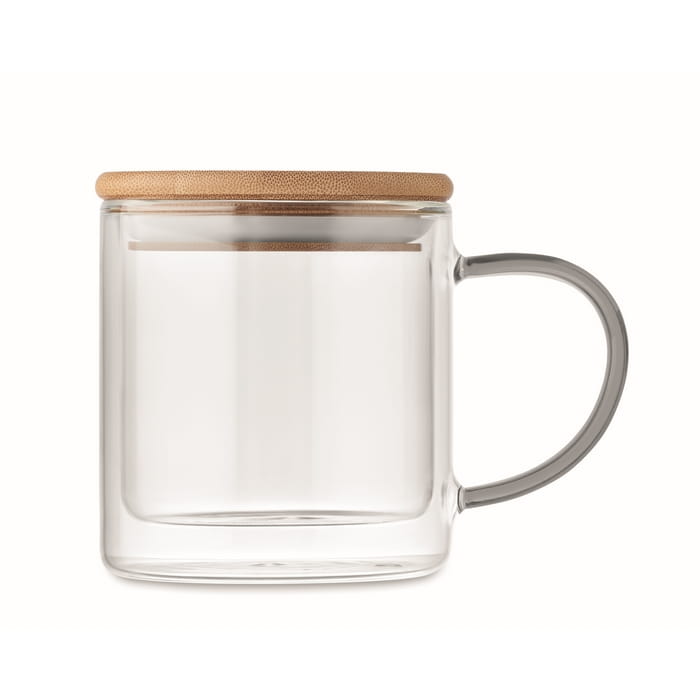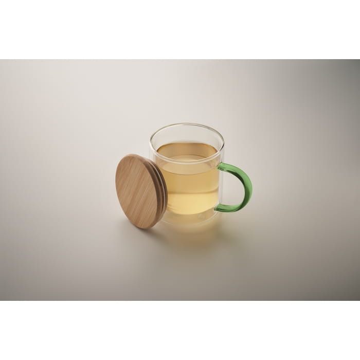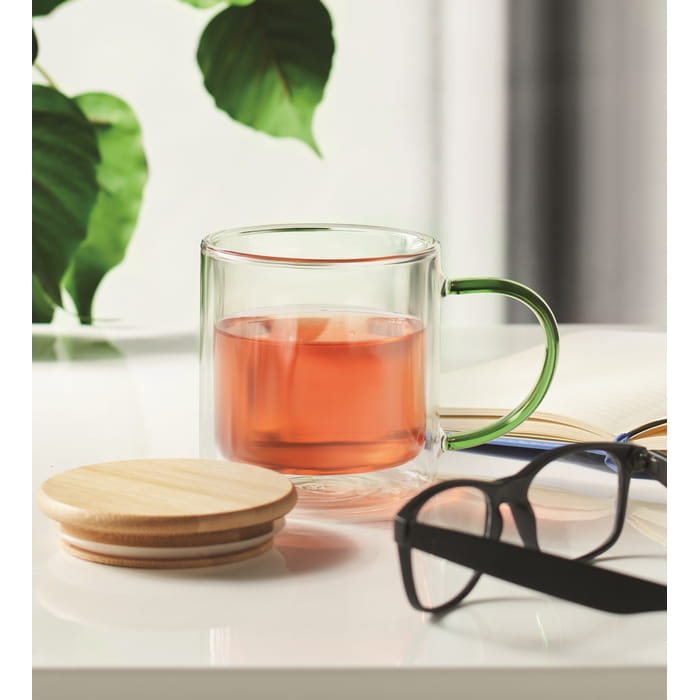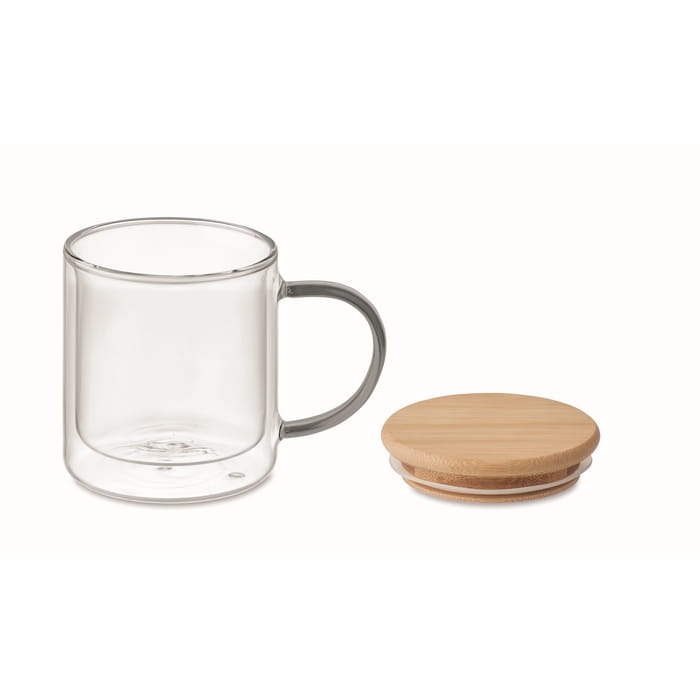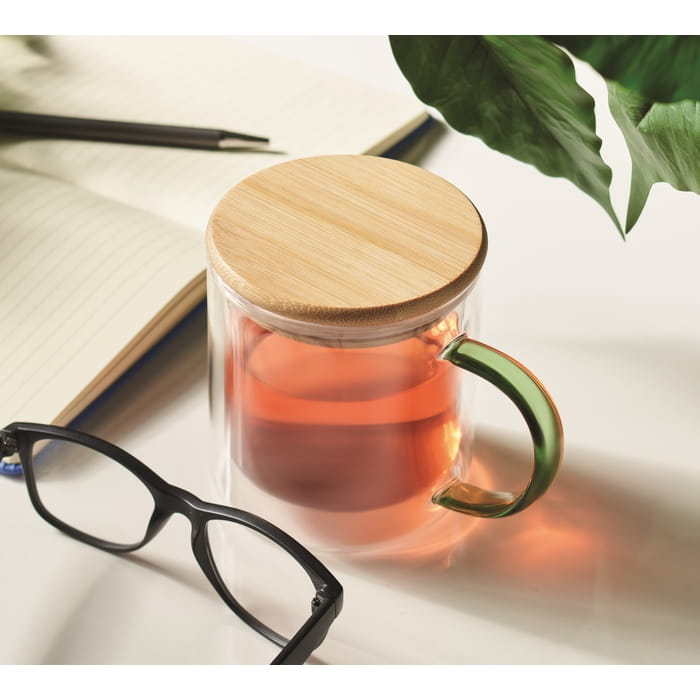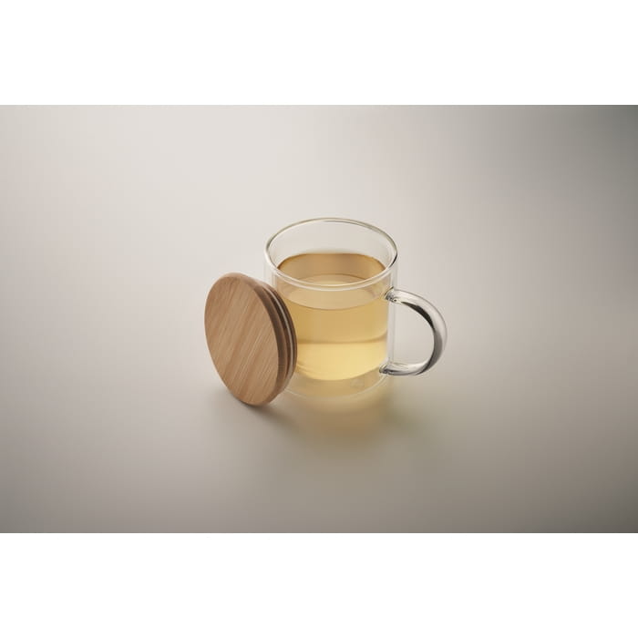 Opinie o "Kubek szklany z podwójnymi ściankami i pokrywką bambusową Farbi"