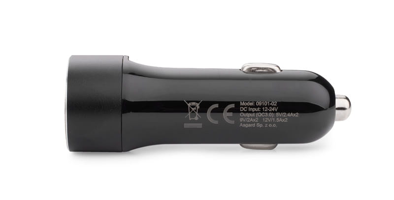 Ładowarka CRUSH to gadżet 3 w 1. Oprócz podstawowej funkcji ładowania urządzeń posiada przecinak do pasów i młotek bezpieczeństwa. To, co wyróżnia ten produkt to funkcja szybkiego ładowania QC3.0 w obu portach USB.