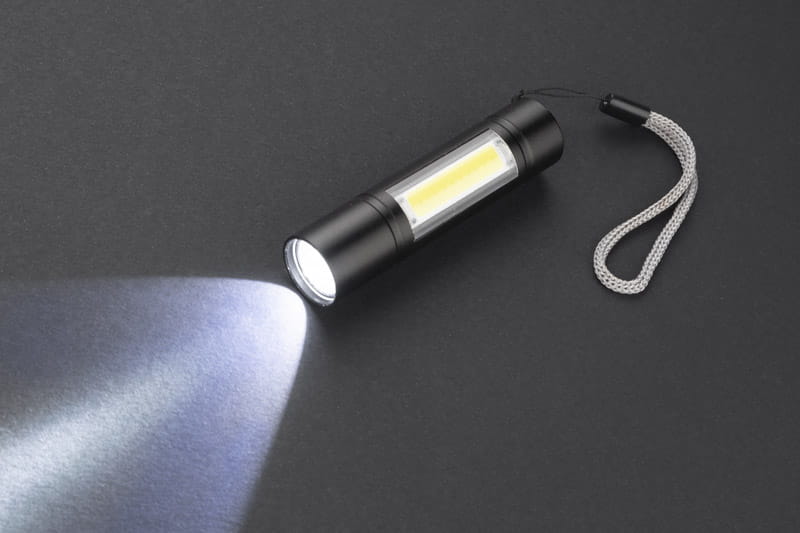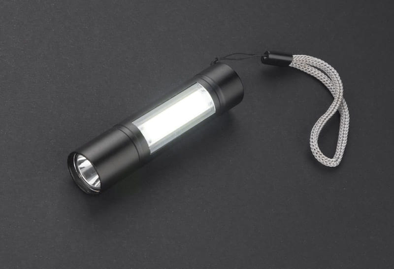 BATRI to wygodna i solidnie wykonana latarka z trzema trybami światła: ciągłe, migające i boczne COB. Wykonana z metalu. Wyposażona w smyczkę i wbudowany akumulator ładowany poprzez kabel micro USB, który znajduje się w zestawie. Moc latarki: 3W, pojemność baterii 550 mAh.
