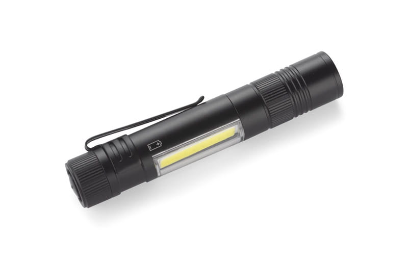 Latarka MAESTRO to gadżet wielofunkcyjny. Oprócz głównej funkcji, czyli lampki COB, w produkcie znajdziemy również zestaw trzech bitów: płaski, krzyżowy i gwiazdkowy. Latarka wyposażona jest w metalowy klip i magnes do mocowania.