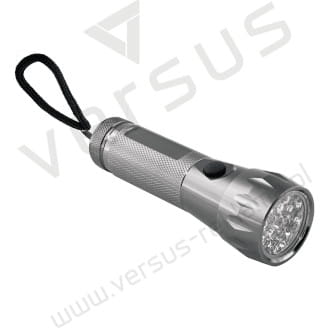 Doskonała 17 diodowa latarka LED, wykonana ze stali nierdzewnej. Zasilana 3 bateriami typu AAA dołączonymi do produktu. Zapakowana w etui tekstylne i dodatkowo w czarne kartonowe pudełko.