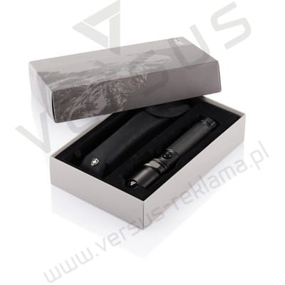Latarka zewnętrzna o dużej mocy 1W w niezwykle wytrzymałej obudowie z aluminium. W zestawie znajduje się również pokrowiec Swiss Peak. Produkt zastrzeżony ®