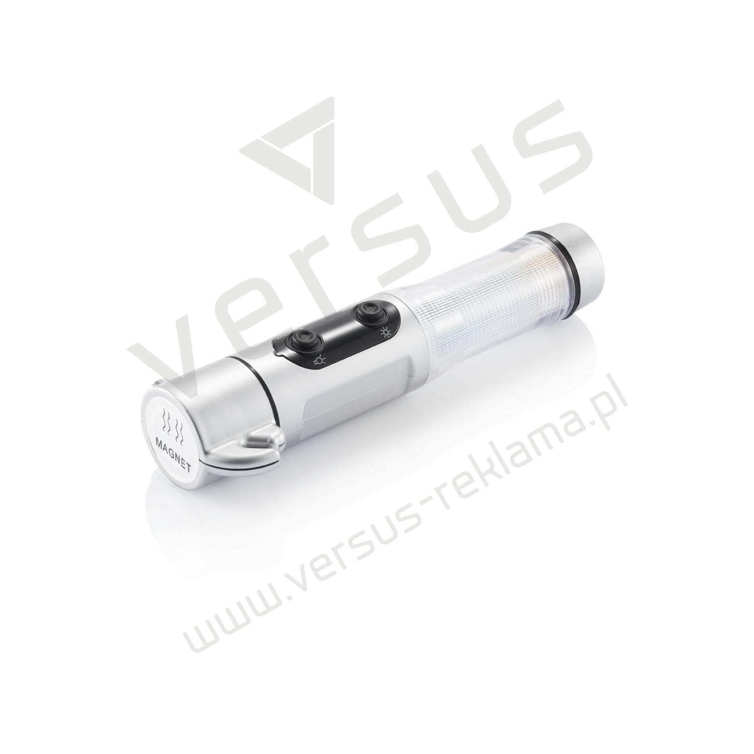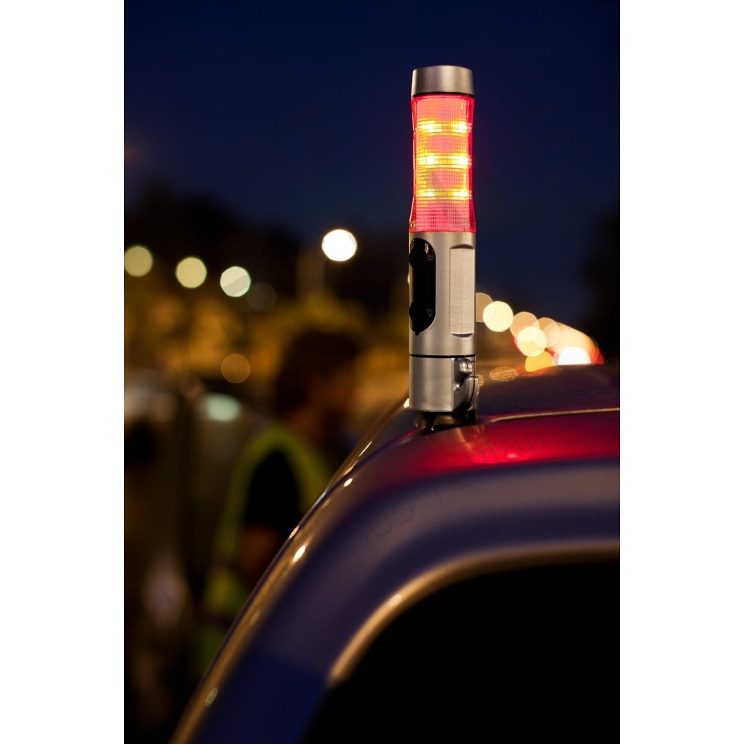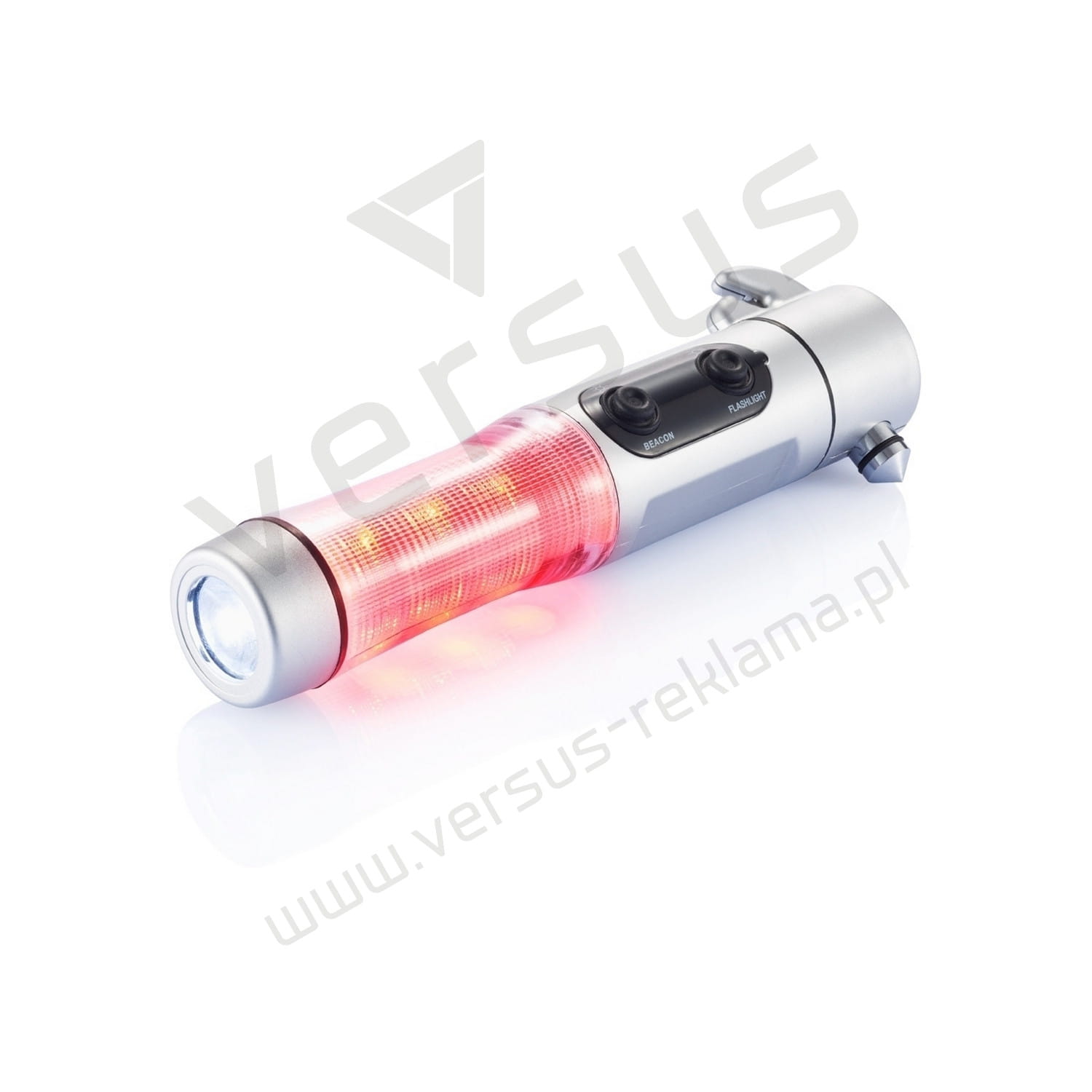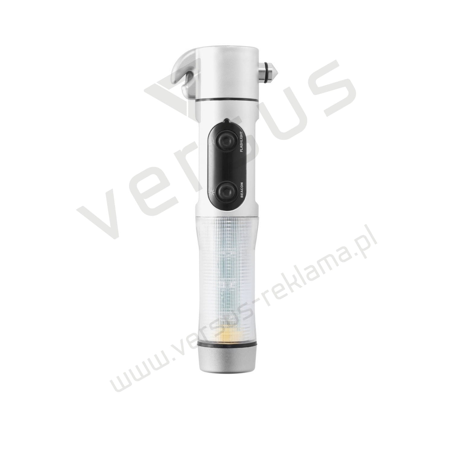 Latarka bezpieczeństwa z magnesem, 1 biała lampka LED i 9 czerwonych lampek na bocznej stronie, nóż do przecinania pasów bezpieczeństwa, młotek bezpieczeństwa