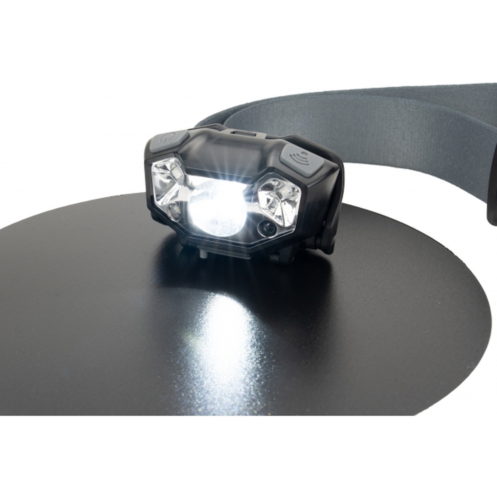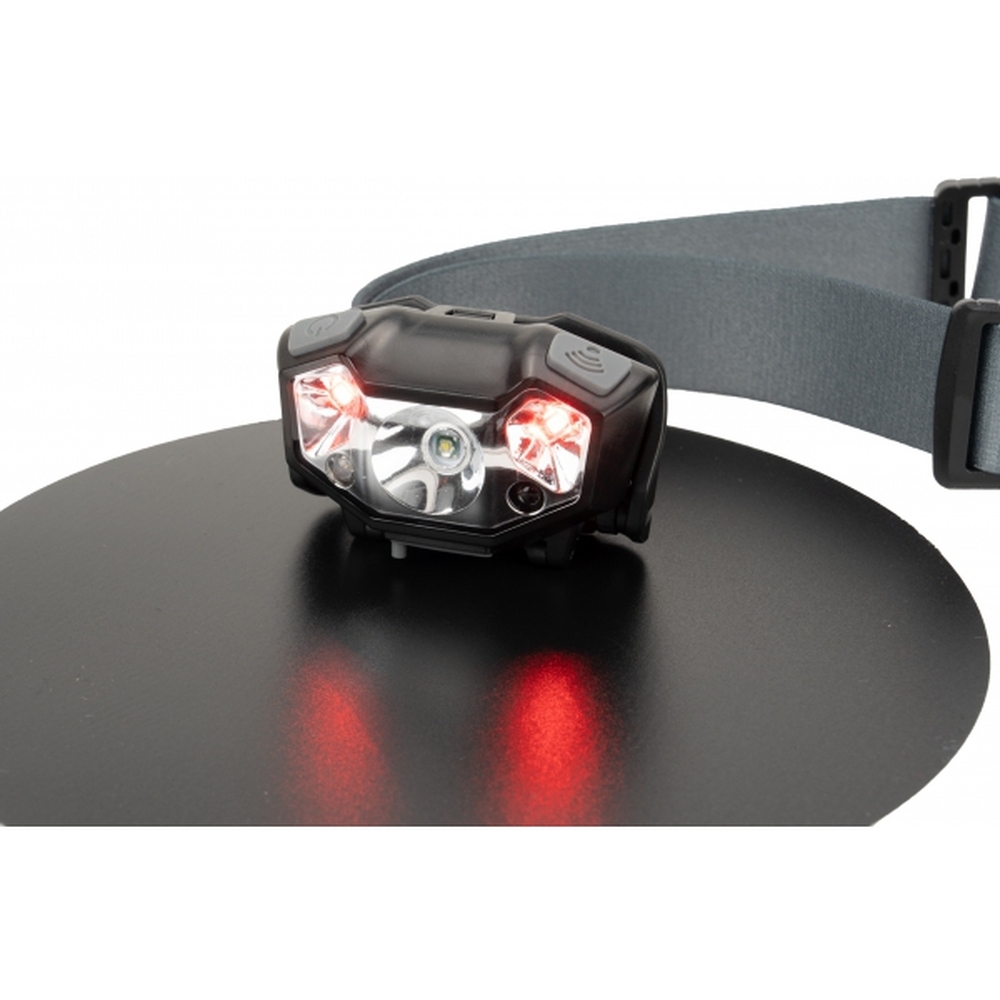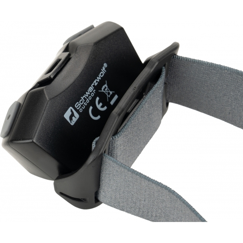 Latarka na głowę marki Schwarzwolf z diodą XPE. Posiada sensor dzięki któremu można włączać i wyłączać latarkę za pomocą gestu i 5 trybów świecenia: słabe światło, mocniejsze, miganie, czerwone światło oraz czerwone migające światło. W zestawie z gumką na głowę z logiem Schwarzwolf. Latarka ładowana USB typ C (kabel w zestawie). Gdy bateria jest w pełni naładowana, świeci do 7 godzin. Jasność: 120 lumenów.