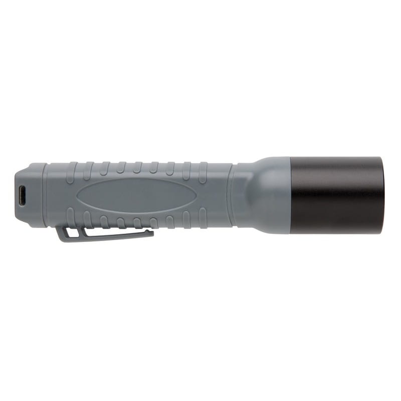 Latarka o mocy 3W z klipem do paska, kompaktowy rozmiar wykonana z ABS, głowica z aluminium, jasne światło 180 lumenów, zasięg świecenia do 200 metrów, czas pracy do 2 godzin, wodoodporność IPX 44, baterie w komplecie