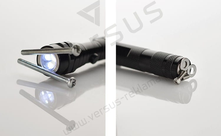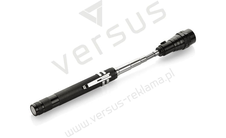 Niesamowity gadżet o licznych zastosowaniach. Wykonana w całości z metalu latarka posiada rozsuwany, teleskopowy korpus oraz ruchomą główkę z 3 diodami LED. Dodatkowym atutem są magnesy umieszczone na obydwu końcach latarki. Konstrukcja jest bardzo solidna i wyposażona w metalowy klip do zawieszenia. Znakowanie możliwie na specjalnie przygotowanej płaskiej powierzchni na rękojeści.