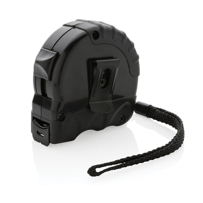 Miara 5 m, taśma o szerokości 19 mm z haczykiem, przycisk blokady, wykonana z ABS pochodzącego z recyklingu z certyfikatem RCS (Recycled Claim Standard) który gwarantuje, że wykorzystane materiały pochodzą z recyklingu, całkowita zawartość materiału z recyklingu obliczona w oparciu o wagę całkowitą przedmiotu: 17%, uchwyt z TPR, w pudełku z papieru kraftowego z certyfikatem FSC® mix (Forest Stewardship Council)
