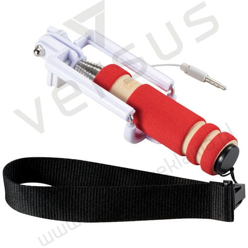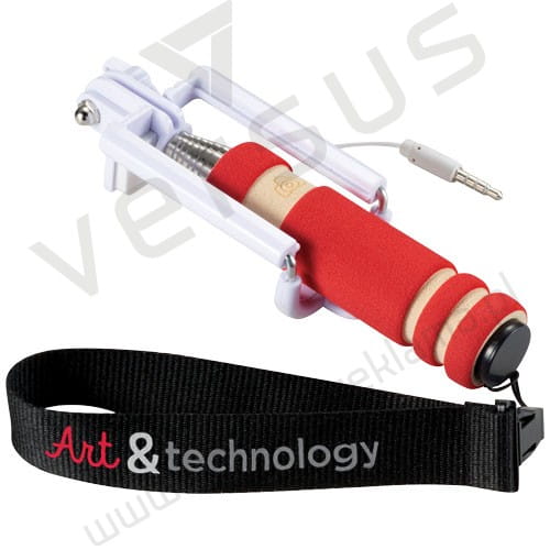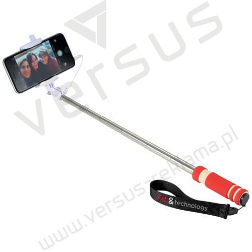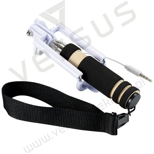 Guzik na rączce pozwala na łatwe robienie zdjęć. Kijek selfie może być rozciągnięty teleskopowo i posiada pasek, który można założyć na rękę. Zapakowany w pudełko upominkowe.
