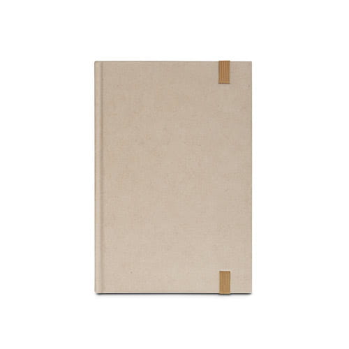 Notatnik A5 w twardej oprawie wykonany z papieru z trzciny cukrowej (80% trzciny cukrowej). Wewnątrz znajduje się 160 kartek w linie wykonanych z papieru z trzciny cukrowej (80% trzciny cukrowej) (90 g/m²), pasek oddzielający i gumka do zamykania notatnika. 147 x 216 mm