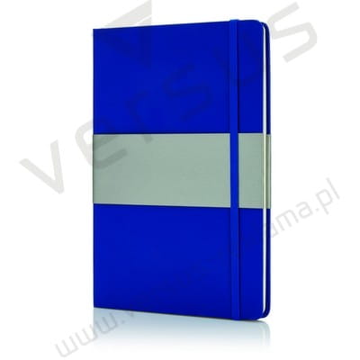 Notatnik A5, elastyczna opaska, tasiemka zakładkowa, obwoluta, zaokrąglone rogi, wewnątrz papier w kolorze kremowym z czarnymi liniami, 80 stron 80g/m2.