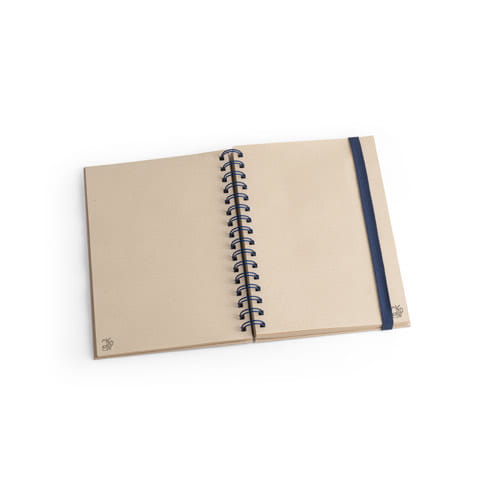 Notatnik A5 z ringami, twarda okładka, wykonany z papieru z trzciny cukrowej (80% trzciny cukrowej). Zawiera 160 gładkich kartek z papieru z trzciny cukrowej (80% trzciny cukrowej) (90 g/m²) i gumkę do zamykania notatnika. 147 x 214 mm