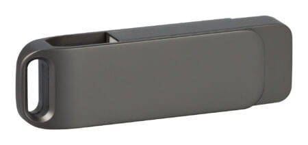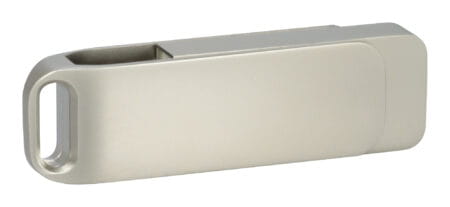 Klasyczna, o ponadczasowym kształcie pamięć USB wykonana z metalu w dwóch odcieniach kolorystycznych – srebrnym i grafitowym. Elegancka, satynowa powierzchnia obudowy w atrakcyjny sposób wyeksponuje zamieszczone logo. Posiada obrotowe zamknięcie z praktycznym uszkiem.