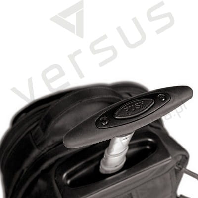 1680D, kółka o metalicznym wyglądzie, aluminiowy uchwyt, przegroda na laptopa 15,6”, przednia kieszeń z organizerem, prążkowany uchwyt oraz (zdejmowalne) paski na ramię.