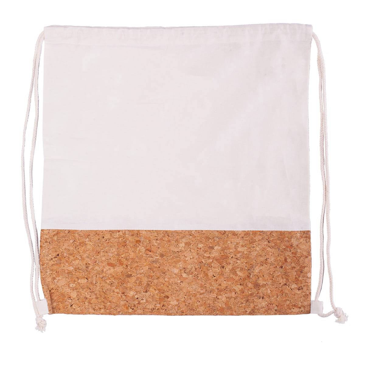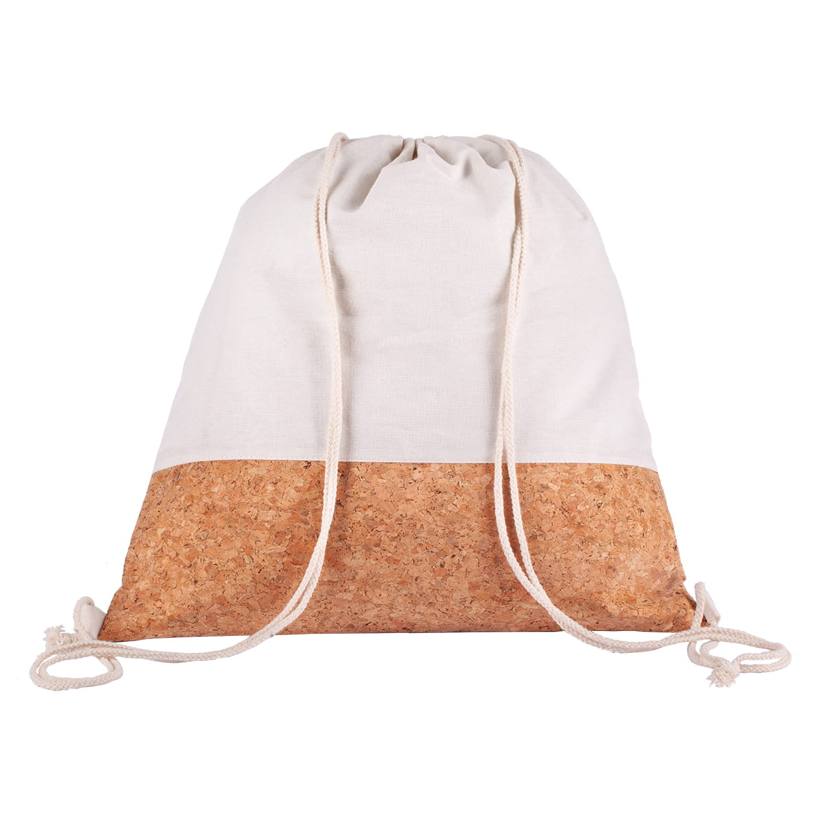 Bawełniany plecak z korkowym wykończeniem. Bawełna 140 g/m². Zastosowanie korka w dolnej części plecaka zwiększa wytrzymałość produktu. Produkt ulega biodegradacji na składowisku. Może być poddany procesowi recyklingu.