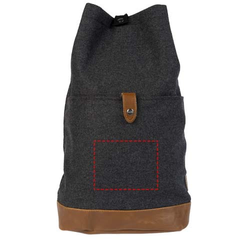 Plecak ściągany sznurkiem Campster. Miękki plecak ściągany sznurkiem z materiału z mieszanki wełny i poliestru z detalami z winylu. Zamykany przez ściągnięcie sznurkiem, z kieszenią zamykaną na zatrzask i uchwytem do przenoszenia - jest doskonały na krótkie podróże. Część kolekcji Campster z Field & Co.®. Wełna i poliester.