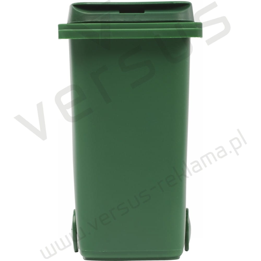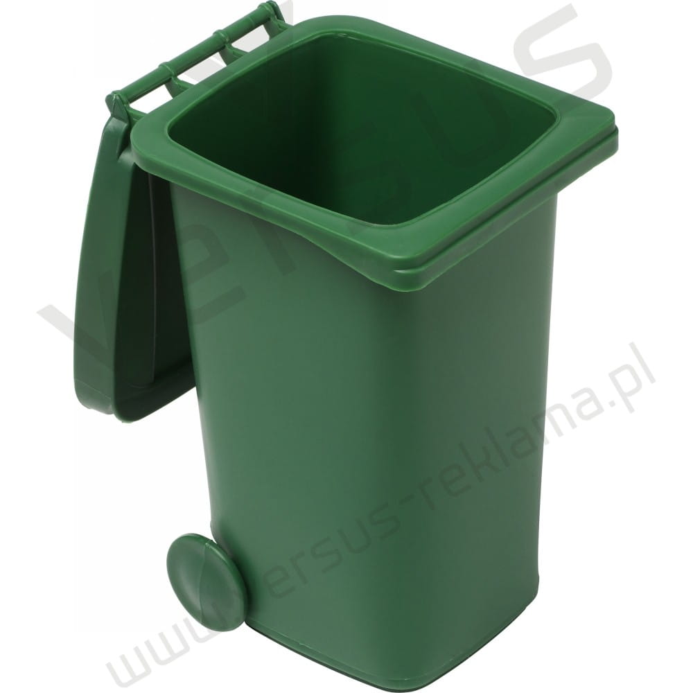Pojemnik na długopisy w kształcie kontenera na śmieci.