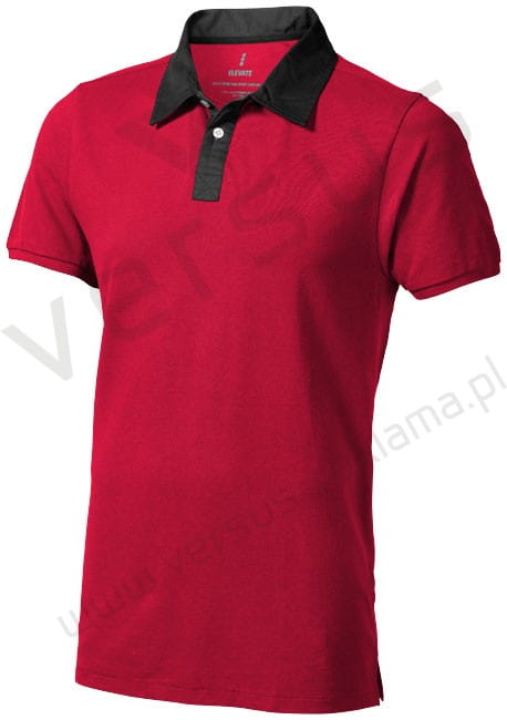 Polo York. Mankiety wykończone dzianiną ściągaczową 1x1 rib knit.Przesunięte do przodu szwy na ramionach.Rozcięcia boczne z satynową taśmą od wewnątrz.Wykończenie ściegiem typu pick.Satynowa taśma wzmacniająca na karku.Półksiężyc.Logo nadrukowane na plecach w kolorze materiału.Kołnierzyk i plisa z twillu. Dzianina piqué, 100% bawełny. 180 g/m².