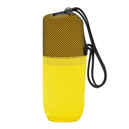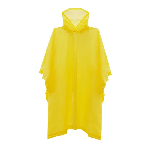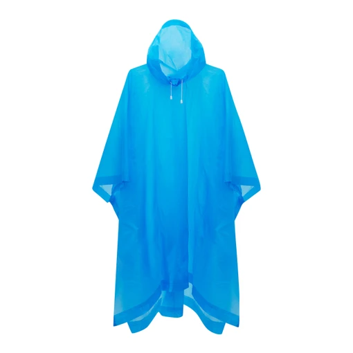 Ponczo przeciwdeszczowe NEVER WET w uniwersalnym rozmiarze, z kapturem, w dopasowanej kolorystycznie torbie z czarną siatką, pętelką do noszenia i ściągaczem.