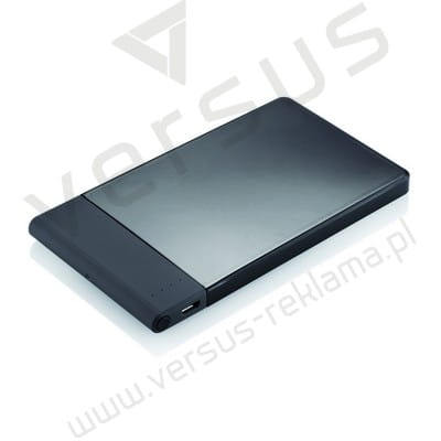 Cienki power bank 4600 mAh z wysokiej jakości baterią litowo-polimerową. Posiada przycisk on/off do wyłączania urządzenia i wskaźnik pojemności baterii. Wyjście 5V/2.1A, wejście 5V/1A. Pakowany w przezroczyste pudełko.