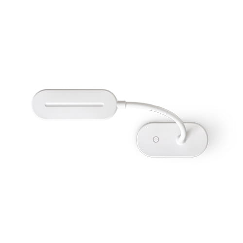 Przenośna lampka biurkowa wykonana z ABS (65% rABS) o mocy 140 lumenów z klipsem do mocowania do powierzchni. Podstawa jest antypoślizgowa, a rurka jest plastyczna w zakresie 360º, co ułatwia regulację kierunku światła. Posiada włącznik/wyłącznik i 3 poziomy jasności do wyboru. Akumulator ma pojemność 1200 mAh, co zapewnia około 30 godzin autonomii w trybie słabego oświetlenia, 7 godzin w trybie średniego oświetlenia i 3 godziny w trybie wysokiego oświetlenia. W zestawie kabel USB-C do ładowania. Dostarczana w pudełku prezentowym z papieru pakowego. 122 x 58 x 456 mm