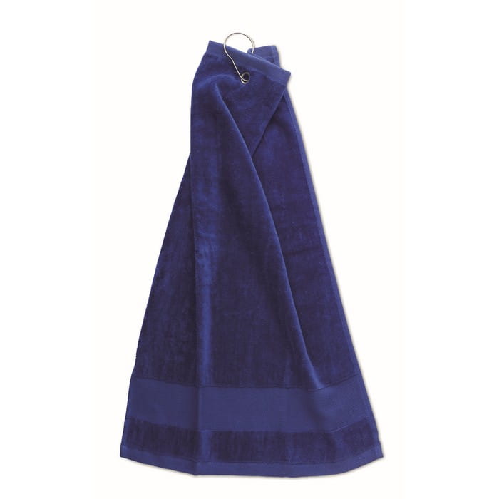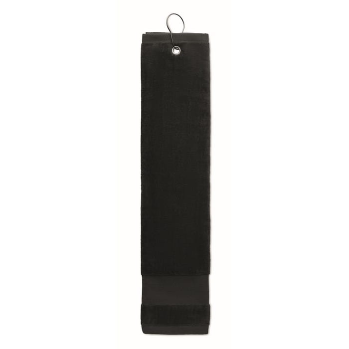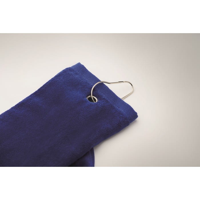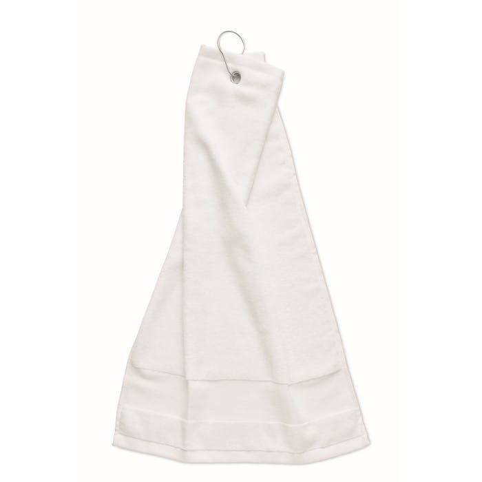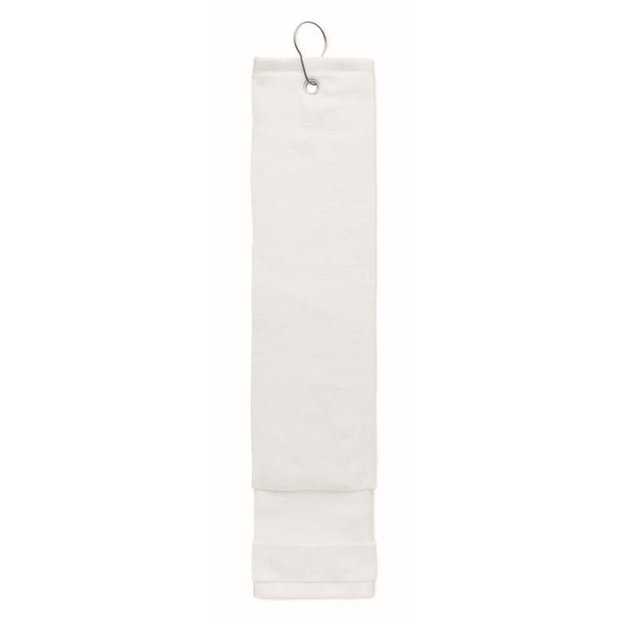 Bawełniany ręcznik golfowy z miedzianym otworem i uchwytem na górze, który może być używany do zawieszania na torbach golfowych. Tkanina 350 gr/m². Rozmiar ręcznika: 40x60 cm. Użyj tego ręcznika golfowego do osuszania piłek golfowych, kijów lub rąk. Zwiększ przyczepność, wycierając sprzęt do sucha i utrzymując je w doskonałym stanie.