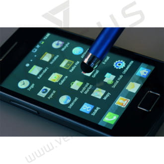 Długopis z rysikiem rozwiązuje problem odcisków palców na ekranach dotykowych. Końcówka wykonana z silikonu jest trwała i z precyzją przesuwa się po ekranie. Plastikowy rysik przymocujemy do smartfona za pomocą dołączonego sznureczka.