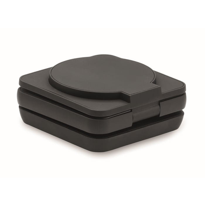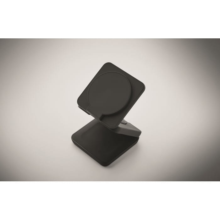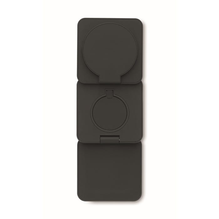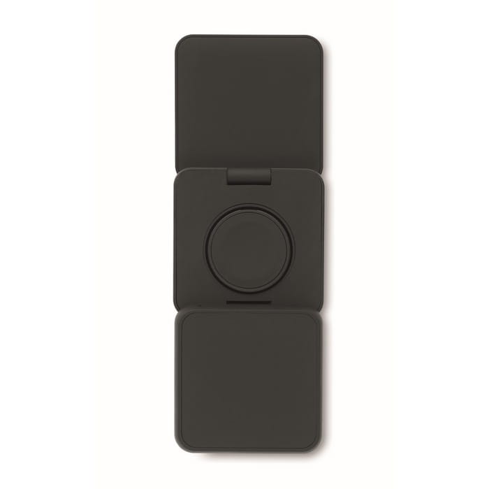 Składana stacja ładująca 3 w 1 z gumowanego tworzywa ABS pochodzącego z recyklingu. Zawiera magnetyczną ładowarkę bezprzewodową 15 W, ładowarkę do smartwatcha (tylko Apple®) i ładowarkę TWS.