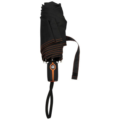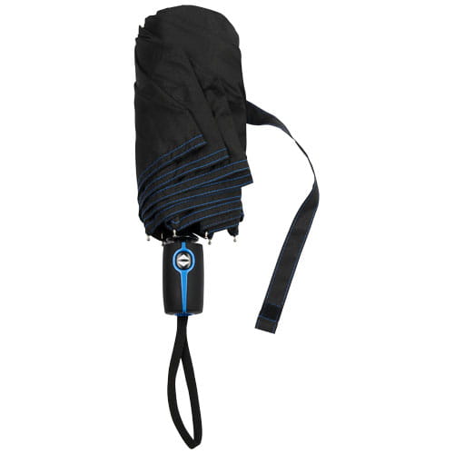 Składany automatyczny parasol Stark-mini 21”. Automatycznie otwierany i zamykany, składany parasol z czaszą wykonaną z poliestru Pongee. Stabilna metalowa rurka i wysokiej jakości rama z żebrowaniem z włókna szklanego, która oferuje maksymalną elastyczność w warunkach wietrznych. Sprzedawany wraz z pokrowcem, można go łatwo schować w torebce lub plecaku. Kolorowe detale na miękkim w dotyku uchwycie, pokryciu i pokrowcu. Duża powierzchnia dekoracyjna na każdym z paneli oraz na uchwycie. Poliester Pongee.