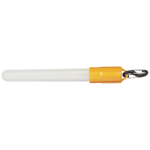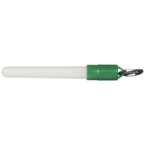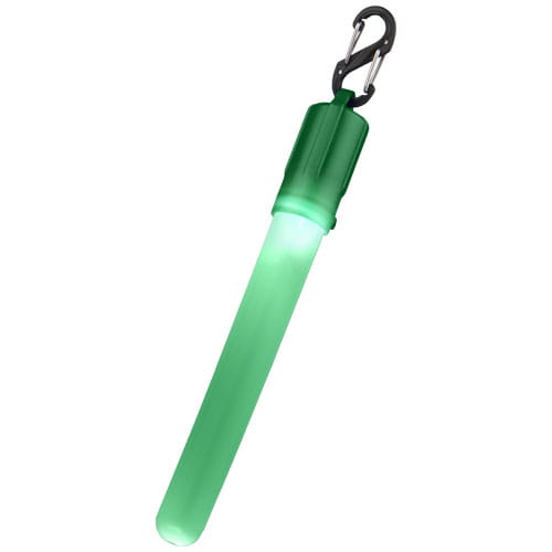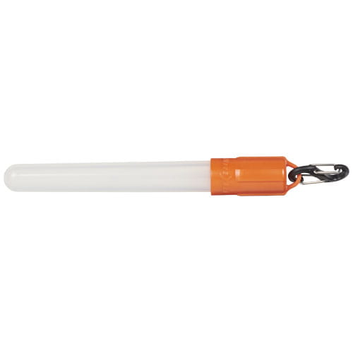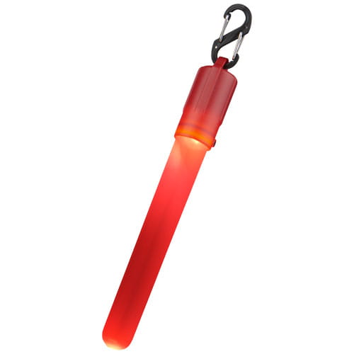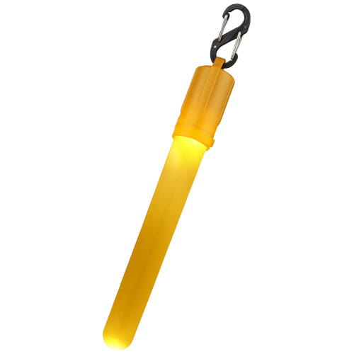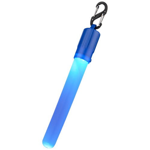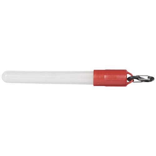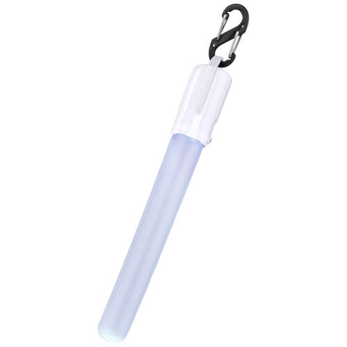 Świecąca pałeczka z klipsem Fluo. Świecąca pałeczka LED z kolorową zatyczką. Posiada włącznik. W zestawie z podwójnym karabińczykiem. Baterie w zestawie. Polipropylen.