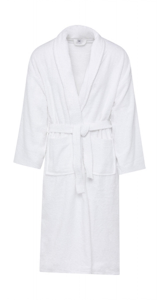 Gruby, przytulny i wygodny szlafrok unisex wykonany w 100% z bawełny czesanej premium z szalowym kołnierzem będzie pasował do każdej łazienki, hotelu lub spa. Wysokiej jakości detale, w tym naszywane kieszenie, stylowe mankiety i pętelka do zawieszania, sprawiają, że jest to doskonały wybór również na spersonalizowane prezenty.
