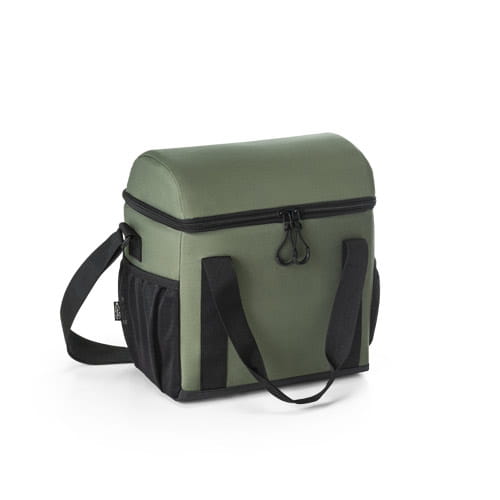 Wyściełana torba chłodząca wykonana z materiału poliestru pochodzącego 600D ripstopu. Składa się z 1 dużej komory głównej z podwójnym zamkiem błyskawicznym po obu stronach i 2 bocznych kieszeni z siatki na małe przedmioty. Wnętrze wyłożone materiałem PEVA zapewnia dobrą izolację termiczną, pozwalając na dłuższe utrzymanie chłodu i dezynfekcję. Solidność materiałów, z których jest wykonana, zapewnia jej dużą wytrzymałość i trwałość, zaprojektowaną z myślą o codziennych potrzebach. Pojemność do 11 L. 260 x 290 x 160 mm