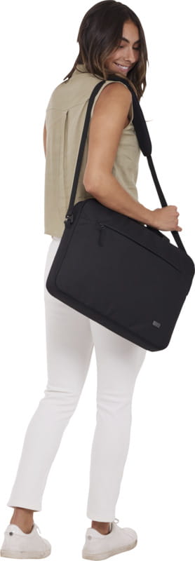 Case Logic Invigo torba na laptopa z wyściełaną komorą na laptopa i tablet oraz innymi przemyślanymi funkcjami przydatnymi na co dzień. Wykonana w 100% z poliestru 600D pochodzącego z recyklingu i podszewki z poliestru 150D. Posiada wyściełaną komorę na laptopa o średnicy ekranu 15,6 cali oraz kieszeń na tablet o średnicy ekranu 12,9 cali. We wnętrzu znajdują się kieszenie organizacyjne, a z przodu zapinana na zamek błyskawiczny kieszeń na małe przedmioty, takie jak klucze. Kieszeń na tylnym panelu pozwala schować ważne przedmioty, takie jak paszport czy portfel, a jednocześnie mieć je pod ręką. Torba posiada również pasek do mocowania bagażu, umożliwiający przymocowanie torby do bagażu na kółkach, co ułatwia podróżowanie. Recicled Poliester.