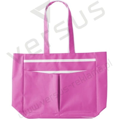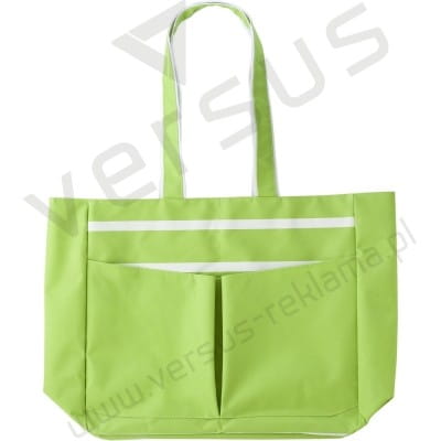 Torba plażowa z białymi pasami z przodu i z tyłu, 2 kieszenie przednie i 2 rączki